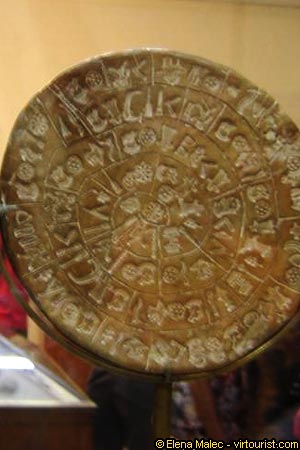 In what the disk of Phaistos is concerned, there are more then 40 book authors who claim the decipherment of the disk. The disk is printed not written and contains hyerogliphic and the liniar A script on both sides.