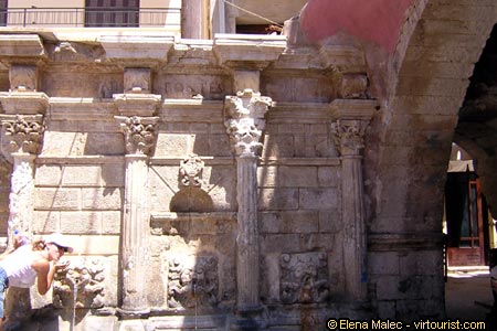 Returning to the old town we visit the fortezza, then the maze of narrow medieval streets takes us along a few landmarks of Venetian Rethymno among them the Rimondi fountain, with lion heads and four columns with Corinthian capitals.