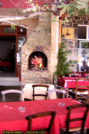 Back to the village we notice that the restaurants are getting ready for lunch with pork, lamb souvlaki and many tantalizing aromas which tickle one's nostrils and invite to sit down for a good meal.
