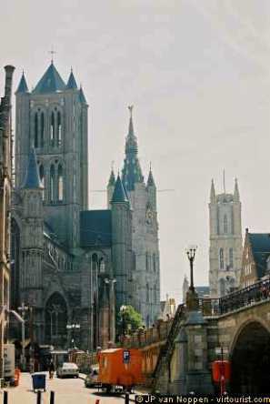 Ghent is another of the Flemish towns with a rich historical and artistic heritage. Saint Michael's Bridge ofers a remarkable view of the Three Towers: Saint Nicholas', the Belfry and Saint Bavon's. The latter hosts the famous retable The Adoration of the Mystical Lamb, most of which has been attributed to John Van Eyck. The painting represents no less than 248 characters, including judges, pilgrims, hermits, knights and martyrs. Ghent is situated at the confluence of the Leye and Scheldt rivers.
