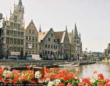 This is where the Ghent harbor was situated in the Middle Ages. The houses, which date from the 12th to the 17th century, are those of various merchants' corporationsa and customs' officers. The thing to eat in Ghent is Waterzooi, that is, fish or chicken boiled in cream and vegetables.