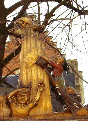 Tradition has it that the inhabitants of Mechelen are not very bright (a reputation entertained by their rivals from neighboring Antwerp). A story tells that the town was woken one night because Saint Rombouts Tower was on fire -- while actually, it was the moonlight that was reflected in its windows. As a result, Mecheleners are nicknamed "Maneblussers" or "Moon-extinguishers".