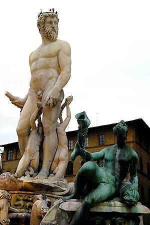 We can admire here the Neptune fountain, a work of Ammannati. In 1497 the religious leader and social critic Savonarola convinced Florentines to light the Bonfire of the Vanities in this square and burn some of Florence's best art. A year later, the same citizens of Florence burned Savonarola in one of these bonfires.