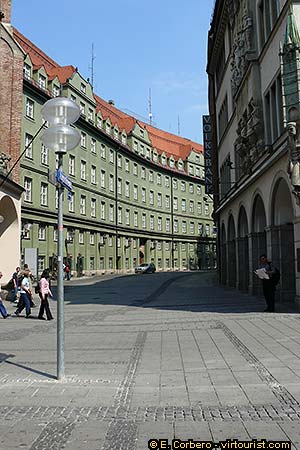 Turning left from Kaufingerstrasse, before getting to Marienplatz, we take one of the side pedestrian streets, which will bring us to a small square, Frauenplatz, where the Fraunekirche sits.