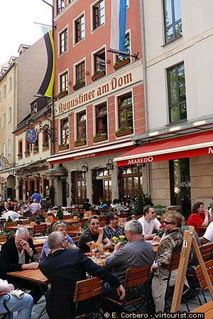 In the picture you have the terrace of the brewery Augustiner am Dom, where you can taste one of the world-famous Bayern beers.