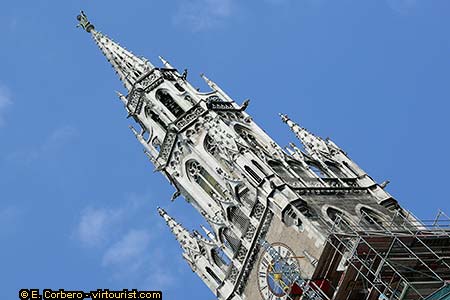 The main attraction in Marienplatz is the Neues Rathaus (New Town Hall), a Neo-gothic building finished at the end of the 19th century. Today it holds the city administrative offices. Its tower is open to the public, from where there is a nice view of the square. Something you should not miss is the Neues Rathaus carillon.