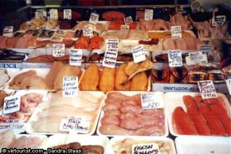 Glasgow has delicious fresh fish. Here's a typical nice wee fish shop. I took this on the way to the Scottish Exhibition Center. Believe it or not I walked from Queen Street all the way out here! Glasgow is a walker's paradise. But don't worry, there is a railway station at the Exhibition Center where you can visit the Australian like building ...