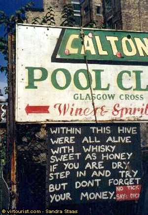 Glasgow humor is depicted here. Not far is the Barras, another Glasgow market.
