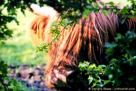 When you visit the Burrell Collection you can also see the highland cattle in the fields adjacent. I had to place my camera through a hedge and a barbed wire fence to take this photo. The animal was as close as the photo shows. Thank goodness it didn't seem to mind my presence!