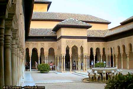 The "Patio de los Leones" (Lions Courtyard) is a great combination of water and architecture, and the most important Al-Andalus sample.