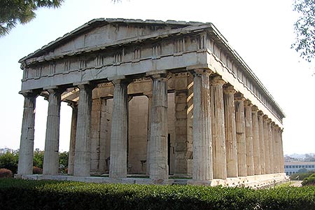 The Temple of Hephaestus, perched impressively on a little hill overlooking most of the Agora, is perhaps the best-preserved Greek temple in the world. It dates to around 550 BCE, and all its columns and pediments and even most of the roof are completely intact. It's a nice change of pace from the crumbling ruins one usually sees at ancient sites!