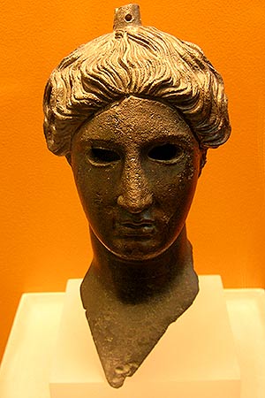 The Agora Museum houses a relatively small, but interesting, collection of archeological finds from the Agora area. The artifacts date from Neolithic times to the Roman era and include various busts, pottery, and objects d'art. Here we see a bronze head dating to 420 BCE.