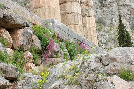 Greece (and hence Delphi) is most popular with tourists in summer. But spring is also an excellent time to come. The weather is usually good (or at least adequate) and the crowds aren't as intense. Plus, if you come in late March, as I did, many of the archeological sites are decorated with colorful wildflowers, like these.