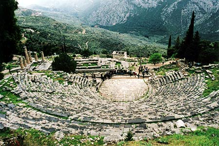 Delphi's theater seats approximately 5,000 and is extremely well-preserved. It's 2500 years old, built by the Greeks, but renovated by the Romans. The mountain scenery must've made a picturesque backdrop for the spectators!