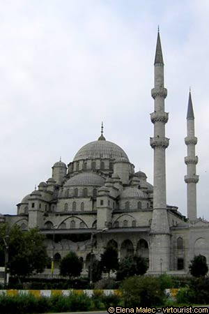 In this photo taken from Eminonu docks you can see Yeni Cami (the New Mosque) - a religious complex consisting of a mosque, madrasa (a religious school which did not survive to the present), a fountain, the sultan lodgings and a mausoleum; its construction lasted 66 years (1597-1663) and was conducted by three successive architects.