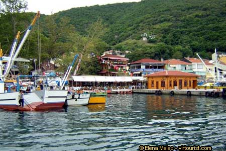 After sailing for three hours we arrive at the end of our trip, the last stop on the Bosphorus, the fishing village of Anadolu Kavagi, on the Asian shore (see the photo). This a picturesque spot with fish restaurants, small shops, truly relaxing and charming.
