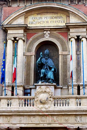 One of these buildings is the Palazzo D'accursio or Palazzo Comunale, the city's town hall, in the picture.