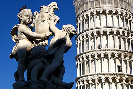 The tower was originally designed by Bonanus, but works were stopped when they finished the third floor and the tower started leaning. In 1275 Giovani de Simone continued the construction, and in 1372 Tommaso Pisano finished the works.