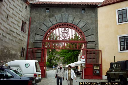 Well, here we are. This is the Cesky Krumlov Castle and its Red Gate. This Castle is one of the biggest in Central Europe, with more than 40 buildings, five courtyards and several parks. It took more than 6 centuries to finish all these works.
