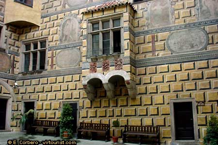 Under these courtyards lie high cellars with vaults, serving as a foundation for the palace walls. The murals on these courtyards depict mythological scenes and figures from Greek and Roman history. They were restored in 1909-1912.