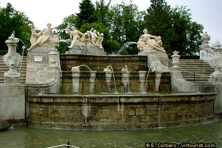 This Cascade Fountain (1765) was designed by the architect A. Altomonte, its water deities figures were crafted by the sculptor M. Griessler and the works were supervised by the chief garden Inspector A. Zinner.