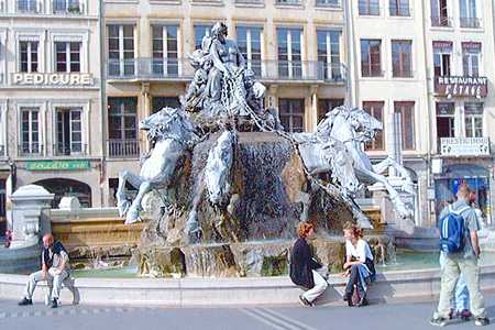 Place des Terreaux is considered the center of the town. Several bars and cafes give life to this square. The square was built in the 17th century, to host the public executions and a pig trade market --I guess that these events used to take place on different days.