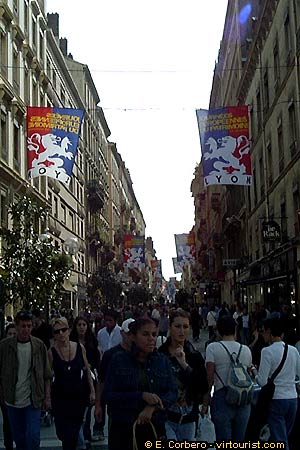 In this photo you can see one of the big pedestrian streets in the city center. This street is called Victor Hugo and goes from Bellecour Square to Carnot Square. Several cinemas, restaurants and cafes draw visitors and locals every day. On weekends the street is fuller than ever.