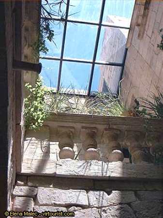 Here is the view of a roofed patio in the medieval building that hosts the show.