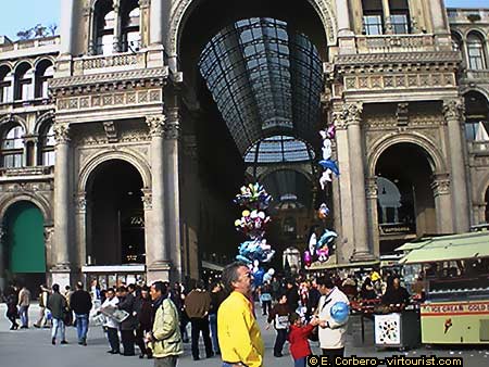 The Galleria Vittorio Emanuele is in reality a covered street. The gallery has a Latin cross plant, and connects the Piazza Duomo with Piazza della Scala. A big triumph Arch welcomes us in the Piazza Duomo to the gallery, lets get inside ...
