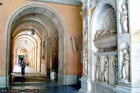 In this photo you can see the arcade that leads to the Basilica. On our right you can see the tomb of Bernat de Vilmarí.