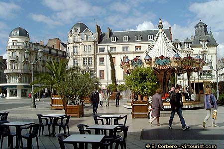 In this photo you can see another view of this central square with its merry-go-round. The city of Orleans proposes several tours to visit the town's main attractions. The main tour is the "Circuit Decouvverte" (=the Discovery Circuit), which leads visitors through the city history. Brochures to follow this tour are available at the tourist office. The town also organizes tours for the handicapped. This tour can also be followed by visitors with vision problems. Ask for more info at the tourist office.