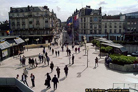 This is a picture of the square in front of the town's train station. From here you can take a train to Paris or to the other cities in the region. There is a tourist office in the street on our left, follow the signs to get there. In front of us sits one of the town's main avenues, 'rue de la Republique', at the other end of this avenue sits 'Place du Martroi' --downtown.