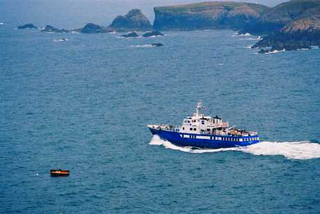 Ouessant can be accessed by boat (there are regular services from Brest and Le Conquet) or, more expensively, by small planes and helicopters. Despite the short distance, it takes a powerful boat to make the trip, for the currents are strong, fast, and treacherous. In nice weather, the trip can be a pleasant cruise. In rougher weather,when you're not used to being shaken and rolled by the waves, it takes a solid stomach to cross without a touch of seasickness. The boats that shuttle between the continent and the islands of Molène and Ouessant bring in tourists, of course, but also products and even cars, trucks, and building materials.