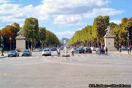 The 'Champs Elysees' is one of the most famous avenues in the world. It goes from Place de la Concorde -where this photo was taken- to the 'Arc de Triomphe' --in the middle of the picture.