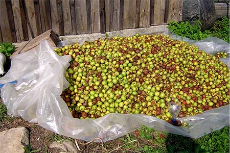 In this picture I photographed some pears set aside for "horinca" which we found by the road closed to a household. Local name for twice distilled brandy, "Horinca" is the Maramures version of palinka and the second time distillation of traditional and national Romanian alcoholic beverage "tuica" made primarily from plums but also from pears or apricots. Thus "horinca" is much stronger than "tuica" and commonly homemade in most of Romanian villages in Maramures.