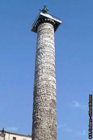In the middle of 'Piazza Colonna' is this column: the Marco Aurelio Column. At the top of the column sits a Saint Peter Sculpture --an idea of Sixtus V. The column, very similar to the Traian one, was built in the years 176-193 to commemorate the victories of this Emperor against the Germans and Sarmaths. If you want to admire the reliefs in details you will have to go to the Roman Civilization Museum, where there is a copy.