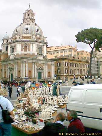 We are now at one of the ends of Avenue Fori Imperiali --the Fori Imperialli Avenue goes from the Colosseum to Piazza Venezia. Here you can admire a vast conglomeration of basilicas, temples and public squares. The Roman Emperors built here monuments to glorify the city of Rome. The most impressive of them all is the Forum of Trajan (107-113 AD). Another must see monument is the Markets of Trajan, with dozens of single room stores.