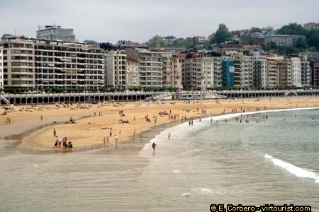 La Concha Beach is one of the most famous and beautiful city beaches in Europe. It is long and wide, and thanks to its good location, just next to the historic center of San Sebastian, it is very popular in the summer. A nice promenade runs along the beach.