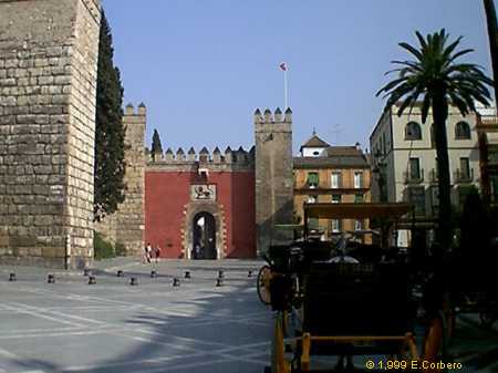 We will now visit the "Alcazar", the Mudejar Palace built by Pedro I over the old Arab Palace, where you can visit the 'Las Doncellas' (maids) Courtyard, 'El Salon de los Embajadores' (where Isabel and Fernando welcomed Columbus from America) and the Moorish Monarchs dormitory.