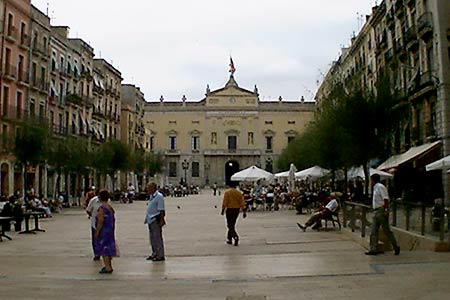 We are now in "Plaça de la Font" (Fountains Square), in the middle of the old Tarragona. The building you see in front of us is the citys town hall. In this square there are many bars and restaurants. If youre looking for a place to eat, dont look any further.