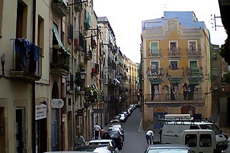 In this photo you see some typical buildings in the town center. We are very close to the Cathedral, which sits in front of the square we have on our right (Plaça de la Seu). As you can see, the facades wall in front of us was decorated with this nice painting.