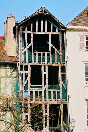 This picture shows how the wooden frame constitutes the main supporting structure, which is then filled up with other materials.