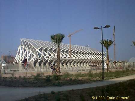 This is the Science Museum, a work of Santiago Calatrava and Felix Candela. Its part of the "Ciudad de las Artes y las Ciencias de Valencia" project. It has four buildings: The "Palacio de las Artes" : an art Exhibition center; "LHemisfèric": an Imax and Laser-show Theater; The "Museo de las Ciencias": the Buil.ding youre currently seeing; and "LOceanografic": an aquarium.