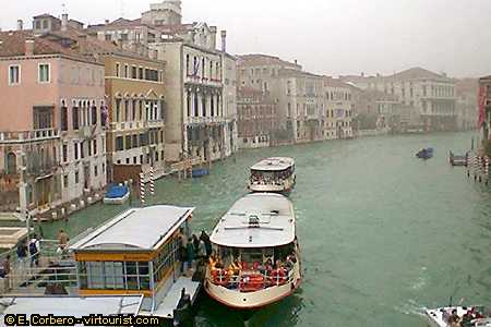 This is the principal avenue of the city, the Canale Grande. It used to be the harbor of Venice. In the 15th century the rich merchants began building their palaces here and the 'Gran Canale' lost its function as a harbor.