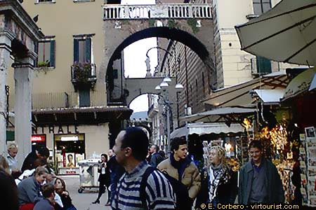 'Piazza delle Erbe' is one of the most picturesque squares in Italy. In this square there's a popular and colorful market. This market has a long history. Already during the Roman Empire times this was the place where the Roman Forum stood. In the market youll find fresh fruit and vegetables.