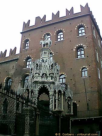 In front of the old Santa Maria Church, the Della Scala family erected their own cemetery. The most original monument is, without doubt, the equestrian Cangrande Sculpture, which sits on a pyramid, work of an unknown Veronese sculptor.
