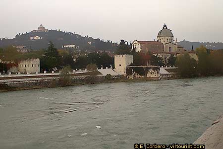 San Giorgio in Braida (the church you can see at the other river side, at your right) was begun in 1447 over the ruins of a church dedicated to Saint George. In the 16th century Sanmicheli added the dome. In the 17th century the current facade was added. Inside this Renaissance Church youll find an interesting work of Veronese --there are also some interesting works by Romanino and Moretto.