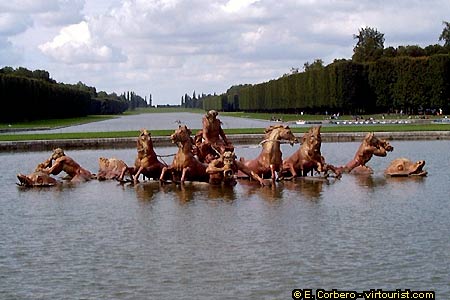This is the 'bassin' (=pool) dedicated to the god Apollo, the King Sun's alter ego. Behind it, you see the 5360 feet long Grand Canal. ./P>
