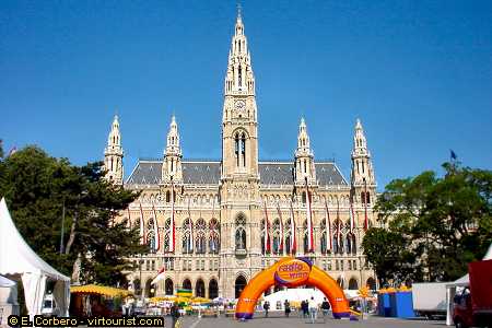 The city Hall (Rathaus in German) holds the office of the mayor of the city of Vienna and the governor of the state of Vienna, the Assembly and the City Council. It was built in a neo-Gothic style by Friedriech von Schimdt between 1872 and 1883. This 321 feet building is the most important secular work of this style in the city.