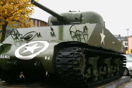 Bastogne is famous for the Battle of the Bulge, one of the last counteroffensives launched by the German forces, which claimed many of the American freedom forces' lives, and caused much of the town to be destroyed. When General McAuliffe received an ultimatum asking him to surrender, his famous answer was "nuts". Today, the General is honoured by a monument in Bastogne's main square, next to which one of the Sherman tanks which served in the offensive has been set up as a reminder of the battle.